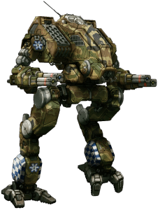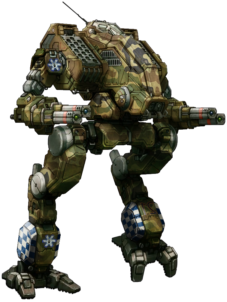 It makes sense BattleTech Heavy mechs like the Mad Dog appear here with gauss rifles and cannons.